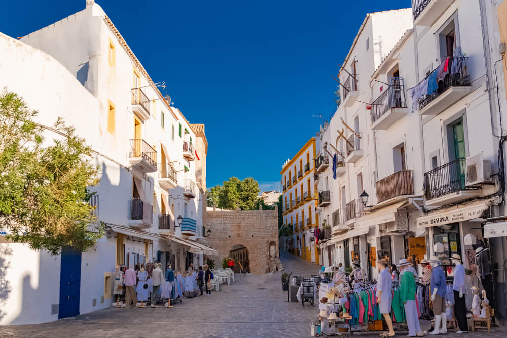 Liebhaber von Urlaubsmitbringseln können in der Altstadt die fliegenden Händler besuchen. Diese präsentieren an ihren klappbaren Ständen allerhand Waren aus der ganzen Welt. Handgemachter Modeschmuck, selbstgemalte Porträts oder die klassischen Souvenirs, die es auf jeder Insel mit Hafen zu kaufen gibt, befinden sich dort im Angebot. Hinzu kommen auf Ibiza CDs mit der Musik angesagter DJs und selbst gemachte Modestücke, die eher der Hippieszene zuzuordnen sind. Diese Stände haben bis zum späten Abend geöffnet, sodass auch nach Sonnenuntergang noch eingekauft werden kann.