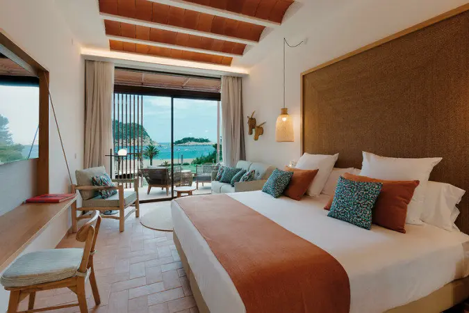 Das Siau Ibiza Hotel besticht durch seine zeitgenössische mediterrane Architektur, die sich harmonisch in die natürliche Umgebung einfügt. Die 96 Zimmer sind in einem sauberen und organischen Stil gestaltet und bieten entweder einen Blick auf die üppigen Gärten oder das glitzernde Meer. Die Atmosphäre des Hotels ist geprägt von Eleganz und Ruhe, was es zu einem idealen Ort für Paare macht, die dem Alltag entfliehen möchten.